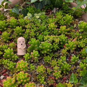 また寝落ちして日付が変わってしもうた~💧 🏷一日遅れてめんごめんご で、お願いします🙏 ①パリダム 犬走りの砂利の中に突っ込んだセダムが元気に越冬。 パリダム最強👍 親子たれぱんだで、 🏷パンダの日 参加します✨ 🏷️毎月28日はグランドカバーの日 という🏷を見つけたので後付けで参加。 踏まれるのには弱いけど、どんどん増えるし良いグランドカバーになりそう👍 ②パープルヘイズ❓ 札はセダムしか書かれていない、名無しのツブツブ。 当初はダシフルム❓と思っていたのですが、ダシフィルムは繊毛があるとの事ですが、ありません。 かと言って屋内で越冬させた子はミドリンで葉っぱも少し薄く、パープルヘイズっぽくないと思っていたのですが、屋外で越冬した子を見ると、めっちゃパープルヘイズっぽく見えます⁉️🧐💜 セリア産ニャンコハニワで、 🏷ハニワの日 🏷ありがたハッピー❤️100均 参加します✨ ③あっぷ パープルヘイズの別名は大型星姫美人とのこと タダの星姫美人と大型星姫美人のサイズ差もよく分からんわ~。 パープルヘイズじゃなくて星姫美人説もありますか❓🤔 🏷別名同種の多肉さん 参加します✨ ④マジョール こうして見ると似てますが、拡大するとマジョールの葉っぱはキラキラしたツブツブが見えます✨ ⑤推定タイトゴメ 買ってないけど、プランターの中にいきなり出現した子。 多分、見切り品でたくさんお迎えした苗のどれかに、葉っぱの一つも紛れ込んでいたものと思う͛.*🍃 冬を越したらめっちゃ増えてる⁉️強い‼️ 北海道でも越冬できるつぶつぶセダムさん達で、 🏷つぶつぶの日 参加します✨ 🏷つぶつぶ倶楽部 に入部させて頂いたので、後付けで🏷付け。 オヤジ祭りの@Gunko さん主催です❣️ 写真はないけど記録✍️ ようやくいい感じに晴れて、でも夕方からはまた雨との予報だったので、めっちゃお庭頑張って耕したり、イチゴ移植したり、美笹豌豆定植したり、スナップとツタンカーメンの紫エンドウまいたり、ニンニク追肥したり、色々頑張りました。