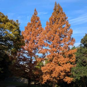 メタセコイアの紅葉🍁 リュウノヒゲの青い実🔵