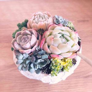 はっぺの多肉さんのカルチャークラブで 可愛いリメ鉢を作りました😊 やっとそのリメ鉢に寄せ植えをしてみました〜🌵🥰