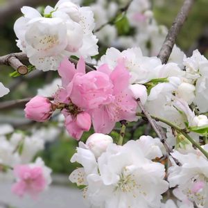 今日は外せない用事があり外出しておりました。 そのとき出会った花桃です。 白とピンクの花が混じっていて不思議でした。源平咲きのハナモモです。 🌟💫はじめは桜だと思いました。教えていただき感謝いたします🙇