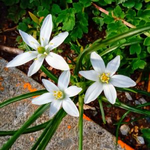 オーニソガラム ウンベラツム。 名前が難しいですが、オオアマナ(大甘菜)でいいと思います。 ベツレヘムの星。春に咲く六弁の白花。ユリ科。