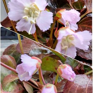 イワウチワ(岩団扇)イワウメ科イワウチワ属 先日行った山野草園にイワウチワが咲いてました。 淡いピンクで花弁の先がフリフリしていて可愛いです。 紅葉した葉っぱもツヤツヤして綺麗です。 花の直径は約3cm、広鐘形で先が5裂し、各片の縁は更に細かく裂け、フリルのようで可愛いです。 色は淡紅色で、白色に近いものからやや色が濃いものまであります。 🏷️ 木曜日は桃色