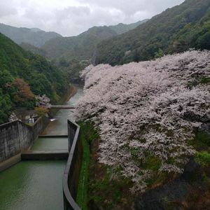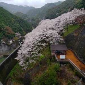 雨の中、みなべ町の結構有名どころ、島ノ瀬ダム~🎵桜が満開ダッタ。