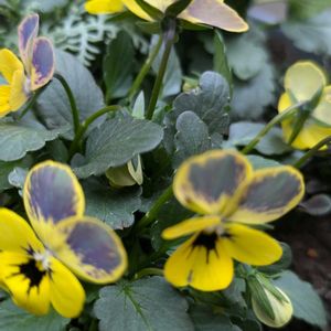 🥀ときめきビオラ🥀 スパイシーマスタード🥀 寄せ植えした子達を並べ 眺めてみた所 目を引く色が少ないかなって 明るめの子を連れてきました この子に頑張ってもらいたい