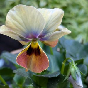 🥀種蒔きビオラ🥀 先日蕾を見つけた 種蒔きした子 花が開きました☺️ 可愛いです💕