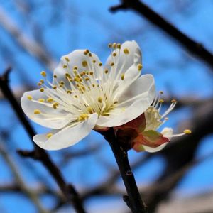今日のお花 梅 我が家の梅の木は、白梅。 二分咲きと言ったところでしょうか🤔 丸い蕾が可愛い💕 ん?👀 ここだけピンクがかったお花が🫢