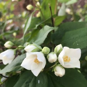 梅花空木 Philadelphus coronarius 待ちに待ったバイカウツギがさきはじめました💕 まだ蕾の方が多いので金曜日の蕾たちに参加させて貰いまーす💕 義母が辛抱と呼んでる花🌸 この花が咲くと小学校の先生にいつも辛抱強く相手して貰ってるから御礼に持っていけと渡されたと、花が咲くと毎年語ります。 無口な大人しい生徒だったろうにと思うけど、周りにガキ大将ぽいのがおるもんなぁとか思ったり… 今年は私が咲くのをじっと待ってたよ❣️ 甘い香りがたまりません♪💕