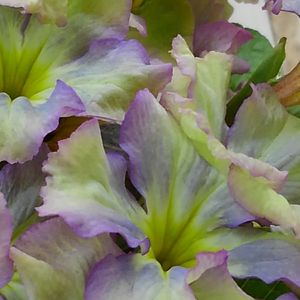 おはようございます😃 プリムラ💘 🎤🎶ウチにはこんなコがいます 🎶🎤ウチにはこんな子がいます 🎶ウチにはこんな✿こがぁ〜来ました😚💕 HCへ、薔薇用の消毒等 これからの必須アイテムを買いに🚗💨 割引品コーナー(横)に20%OFFになったコレ✿☝ 初めて目にする花😲❓ タグ表だけ🏷を 〰️🔍👀❓〰️ どうやら「プリムラ」で、まだ蕾もありそう😃 20%OFFでもワタシ的にはちと高い⤵👛💧気もしつつ…花ポットから手が離れませーーん🤣🤣💦 プラス消費税をお支払いして帰宅🎶🚗💨 帰宅後の1人撮影会を始めて💡🔍 🖊【🏷ビオラ育種で有名な身元園芸さん作出のプリムラです。アジサイのようななんとも個性的な色で咲き始めはグリーンで 咲き進むとブルーがかってきます=🔍検索より】 枯らさないよう、頑張ってみます 💛💚💜🌿(*˘︶˘*).。*💕