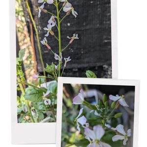 昨年、三浦半島の海岸で拾った鞘からの発芽で咲いたハマダイコン…🌊 ピンク色かかった薄紫色🩷🤍💜 硬くて食べられないのが残念😆
