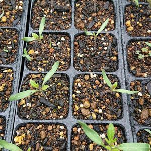 『中玉トマト』 🍅🍅🍅🍅🍅🍅🍅🍅 ようやく本葉が見えてきました(o^∀^o) そろそろポリポットに定植しないとね‼️