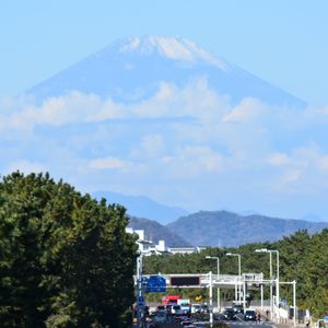 こんにちは〜😉🎶 お花じゃなくてゴメンナサイ😆 きょうの午前中はチャリンコとばして海まで行ってきました🚲🌊 海に渡る歩道橋の上から見えるR134と富士山🗻、すぐ左が海です🏄♀ 箱根駅伝のコースで、毎年1月2日、3日はこの沿道で応援しているのですが、来年は応援も自粛ですネ🥴