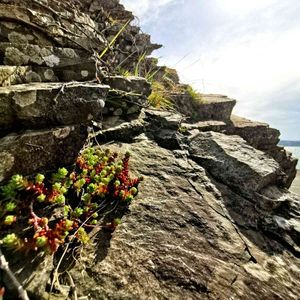 セダム属 タイトゴメ 撮影地 鳥取市 夏泊漁港 3/27撮影 日本産の多肉植物で この辺り周辺には沢山自生しています!🌿 冬は雪が降り夏は地獄のような暑さになるような環境ですが切り立った岩肌に沢山くっ付いてました!⛰️ 葉の先端は緑ですがそれより下が紅いのは紅葉の後の様ですね!🍁 ちなみにここは🎞️You Tubeで鳥取リュウグウノツカイで検索すると出てくる撮影場所から たったの20m程の距離です!w