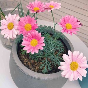 マーガレット 素敵な鉢を見つけ 一度地植えしたんだけど、 やっぱり鉢植えにしました☺️ 何度も植え替えしてごめんね🙏