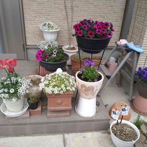 ラベンダーカラーに惹かれて💜 ヴァーベナは毎年、どの色にしようかな〜と迷ってましたが、、、 ラベンダーのたくさん入った ハンギング鉢に一目惚れ💕 初回は、電車で行ったため、 持ち帰れないと諦めました。 日々、想いは募っていき、、、 どーしても欲しくなり、、、 三日後の夕方、二駅先まで 今度は自転車🚲でGO❗️ 母の分もゲットしました! その足で母のところにも届けたら、 母「もうピンクはいっぱいあるから、、、」 と呟くので 私「欲しい人はたくさんいるんだから、じゃあ持って帰る!」 と釘を刺しつつも、置いてきました! 写真はラベンダーの多いもの。 こちらは、私のもの💜 夏にったら、似たような花のペンタスも迎えたいでーす。