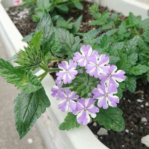 スーパーなバーベナが咲き始めました!😆👏 昨日の夕方は、チラッと花色が見えてるだけでまだ蕾でしたが、朝開いたみたいです✨✨ 綺麗~😄✨