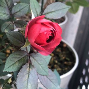 ミニバラ コーヒーオベーション☕️🌹✨ かっっっわいーーー( ᵒ̴̶̷̥́௰ ᵒ̴̶̷̣̥̀ ) 丸弁の赤茶色の薔薇!真っ赤じゃないの!朱色?くすんだ赤が素敵なの!丸くてコロコロ! 葉っぱも黒っぽくて、もう( ̄TT ̄)鼻血ぶー 匂いは…クンクン( ̄∞ ̄)微香🙋♀️✨ 可愛くて素敵すぎる…(✽︎´ཫ`✽︎)グハッ