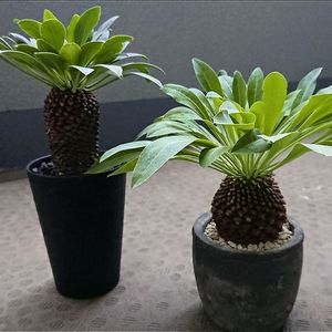 ユーフォルビア属 鉄甲丸。😸😸 ふら~っと、近所の行き付けのガーデンショップへ立ち寄ったらなんと…😅 見つけてしまいました…😋 しかも、かなり安い。😁 迷わず即狩りでお迎えしちゃいました。(笑)😁 入荷したばかりで状態も良く、形、葉、全てが整っていて狩らない理由がありません…😋 二つ比べると、高さや太さは違いますが葉の大きさ?長さが違うのが明らかです。 どちらも、かなり好きです。😍