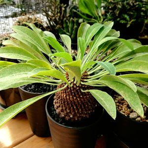 こんにちは! 蒸し暑い日が続きますね、植物達も同じように思っているでしょう! 最後のユーフォルビア:鉄甲丸 葉っぱがなんとなく涼しげですね!