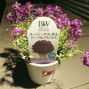 こんばんわ‼️ 遂に出逢ってしまいました‼️ PWさんのスーパーアリッサム パープルプリンセスちゃーん😆 昨年からずっと欲しくて、初めて本物を見ました😆 思わず2度見しちゃった👀👀 ラスト2苗でしたー。 会社から家とは逆方向にある病院に定期的に通院してて、病院帰りにチェックするHCにありました。 車から下車1分以内に玄関前でパシャリ😁
