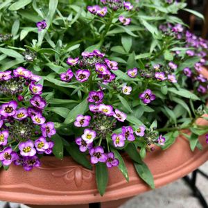 スーパーアリッサム パープルプリンセス🌸 30センチ浅鉢に植え替えてから、鉢一杯になってきたので、花を咲かせています。 真夏になる前に切り戻ししようかなー。