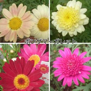 ボンザマーガレット 3色🎶 さくらとレモンとルビー🌸 去年夏越しできなかったレモン🍋をお迎えに行ったら、新色のルビーが…😳 みんな夏越ししてレモンもルビーもさくら先輩🌸に追いついてくれれば嬉しいです🥳