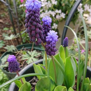 連投失礼します😌✨ ムスカリさん達💜が顔を出し始めました🥰 去年に、ムスカリとアイビーでぎゅうぎゅうになっていた鉢を整理して、家でバラバラで植えていた子達をまとめて植えました🤗 水色に白い帽子を被っている子は花壇に植えっぱなしです。 右上↗️は球咲きサクラソウ 去年の秋に3色入りの球根を植えていましたが、寒波で葉っぱが無くなってガッカリ🙍していたら春🌸に小さい芽🌱が出てきてくれて小さいお花ですが復活p(^-^)q 濃いピンクが咲きかけていて、薄いピンクはまだ小さい芽🌱 右下↘️は、西洋オキナソウ ずっと花壇に植えっぱなしですが、毎年、アネモネと一緒に出てきてくれます😉 後、1株色違いの子が芽🌱を出してます🤗