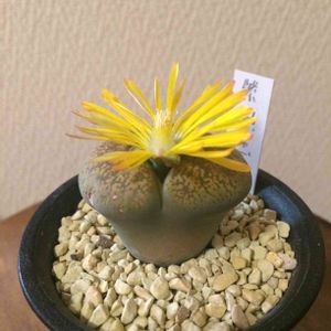 この前のイベントで購入したリトープスの「紫勲玉(しくんぎょく)」ちゃんです😆👍️❤️。 この前、イベントで購入した同じリトープスの「巴里玉(ばりぎょく)」ちゃんとは上の模様が違うタイプです😆👍️❤️。 この子も双子ちゃんなので気になって購入しました😆👍️❤️。 お値段は¥850円(税込)で☺️2.5号鉢付きで種類がちゃんとわかる子だし☺️、リトープスちゃん自体大きいから丈夫に育ちそう😆👍️❤️。 素敵な出会いに感謝しますm(._.)m。
