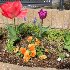 咲いた♬咲いた♬ チューリップにビオラにムスカリ