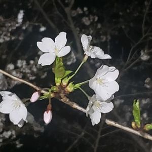 今日、明日が桜の見頃🌸 昼間に人混みの中桜を見に行く元気は無いので、毎年恒例の夜桜を見に行ってきました。 出発しようと思ったらいきなり雷⚡️そして雨☔ 25分で雨が止む予報 目的地の駐車場は出庫の列 雨のお陰で静かにお花見が出来ました。