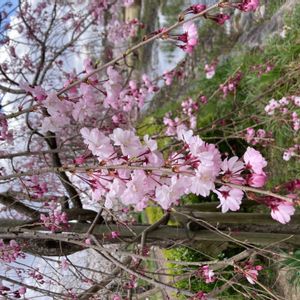 ヤエベニシダレザクラ(八重紅枝垂れ桜)が咲いていました。 江戸時代から栽培されているエドヒガン系の園芸品種です🌸🌸🎶 濃いピンク色💗で、小さい八重咲きの花🌸を枝いっぱいにつけた姿は、優雅です💞😃