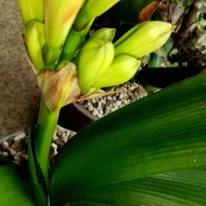 家族が手入れしている君子蘭🧡💛 2月17日に花芽を発見してから2か月(*ˊᵕˋ* )💕✨✨ 時計と反対回りに成長、色づきはじめの様子です☺️🎶 無事咲いてくれて良かったね☺️✨✨