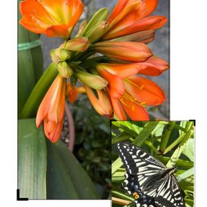 🪴 咲いて来ました、クンシランさん⸝ ⸝ ⸝ 君といつまでも ✭‿✭⸝⋆⸝⋆🥰 🦋 蝶々さんが沢山飛んで来ました💙 ┈┈┈┈┈┈┈┈┈┈┈┈┈┈┈┈┈┈┈┈┈ 【君子蘭】🧡 ヒガンバナ科 クンシラン属 学名: Clivia ┈┈┈┈┈┈┈┈┈┈┈┈┈┈ 💠 花言葉 「情け深い」 「誠実」 「貴い」 ┈┈┈┈┈┈┈┈┈┈┈┈┈┈┈┈┈┈┈┈┈