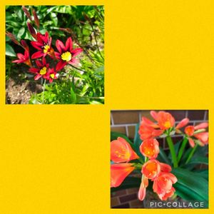 おはようございます 赤い花 バビアナと君子蘭❤️ 赤い花は、元気をくれます😍 今日もお元気にお過ごし下さい