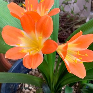 君子蘭が今年もキレイに咲きました。 色の加工はしていません。 本当にビビッドな美しい色のお花です。