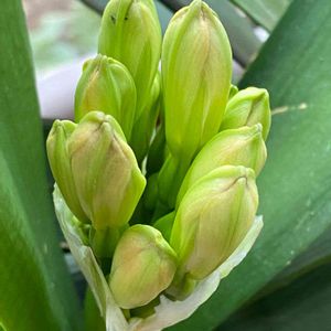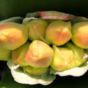 君子蘭のツボミ上がってきました そら豆みたい💚🧡💛🧡💚