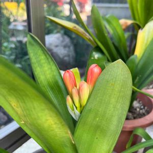 4月に花を楽しませてくれた君子蘭が、また時期外れの花を咲かせ始めました😅 狂い咲き⁉️🤭