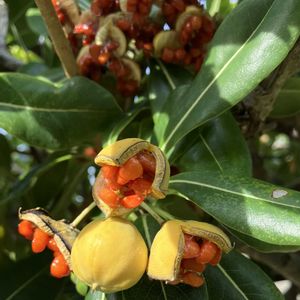 海岸ドライブ🌊 パカっと口を開けた元気なトベラ💥 蕾はコロコロ➰➰➰ 波間には元気なクロサギさん🖤