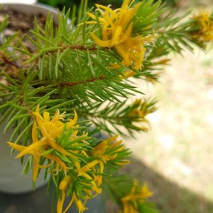 ペルソニア チャマエピティ (persoonia champaepity) 明るい緑色の棘の様な葉に小さな黄色の花を今年も咲かせてくれました〜💛✨