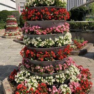 💐ベゴニアタワー💐 浜松駅、北口側はベゴニアだけの花のタワー💐 丈夫で長く咲くから、、経費削減、、❓ ③④南口側は色々な種類💐夏仕様、職人さんがクレーン🏗️に乗って植え替えてました😳 🏷️月曜日はビタミンカラー🩷