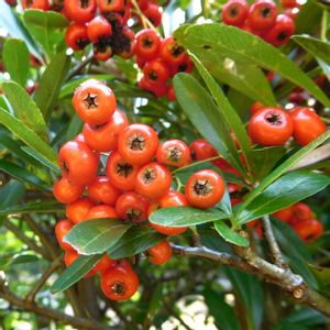 ピラカンサ バラ科トキワサンザシ属の常緑低木。ピラカンサはトキワサンザシの仲間の総称で、日本では主にトキワサンザシ、ヒマラヤトキワサンザシ(別名 カザンデマリ)、タチバナモドキの3種類がピラカンサと呼ばれている。雑種も多く、識別するのが難しいケースもある。いずれも一年中細い枝に艶やかな濃緑色の小さな葉をつける。花期は5〜6月。木に雪が降り積もったように白い花が枝を埋める。秋から冬にかけて枝がたわむほど果実が実る。果実は偏球形の偽果(ナシ状果)。美味しそうに見えるが毒があり、まとめて食べれば鳥も毒にあたる。3種類とも耐寒性、耐暑性に優れ剪定にも耐える。 名前は属名の音読み。属名はpyro(炎)+acantha(刺)の合成語。果実の熟した鮮やかな果色を炎にたとえ、枝に刺があることを表す。 3種類の違いは次の通り。 常磐山査子(トキワサンザシ) ・西アジア原産で明治時代中期に渡来した ・赤い果実は扁平で小さめ ・葉は靴べら形 ヒマラヤ常磐山査子(別名 花山手鞠カザンデマリ) ・ヒマラヤ原産 ・赤い果実は3種類の中で最も大きい ・葉は細長い 橘擬(タチバナモドキ) ・中国原産 ・果実は黄橙色 ・果実の色と形がミカン科のタチバナに似るのが名の由来 出典『樹木の事典600種』『葉っぱで見わけ五感で楽しむ樹木図鑑』『樹木 見分けのポイント図鑑』『草木の種子と果実』
