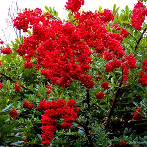 12月6日 今日のお花『ピラカンサ 』です。 【ピラカンサ(トキワサンザシ)】 中国、ヨーロッパ原産、バラ科トキワサンザシ属常緑低木 生け垣や鉢植えとして栽培される。 開花は5~6月で、直径8ミリほどの小花が多数集まって花序を作り、木全体に咲く。 花の後には直径6ミリほどの実がなり、10~11月ごろになると真っ赤に熟す。 生け花、切花に利用され、艶やかで美しいが有毒なタンニンを含むため食用にならない。 樹高:3~4m 開花期:5月~6月 花色:白 近所の道端にて