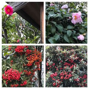 こんばんは😊 山茶花と常磐山査子トキワサンザシ❣️
