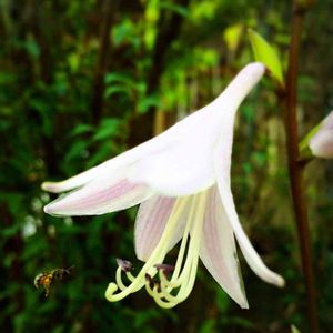 今朝 咲いたホスタの花。 小さな蜂が集まってました。 🐝 🐝 🐝