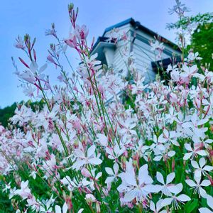 ガウラ、3回目の満開🌸 毎年、大きく成長し続けてます😅 春の頃は茎もビヨーンと伸びきって 大暴れ💧 3回目は、やっと落ち着いて少し低めにわんさか咲いてくれました🌸 あちこちに種も飛ばしてらしく あちこちにガウラのお子ちゃまが出てきてます😅 元気いっぱいのガウラさんです💕
