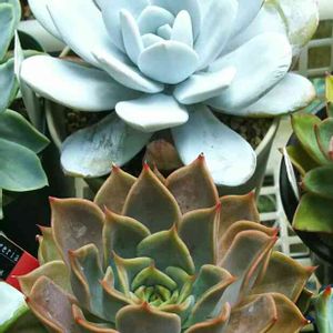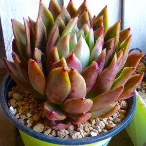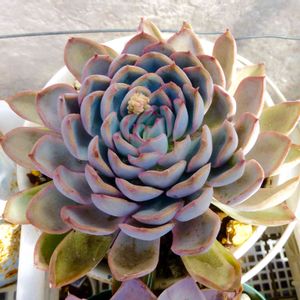 おはようございます🎵多肉作業も今月中には終了したいけど〜終わらなそうです💦 今日のエケベリアは「花の宰相」で入手した子だけど〜違うんじゃないかと疑っている子です。相府蓮にそっくりなんだけど?? 中心から色が醒めてきてるけど、それもまた綺麗かな😊