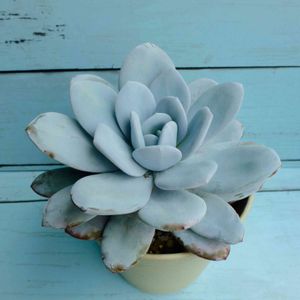 おはようございます🎵 今日は肌寒いくらいの朝です。昨夕方にチビ苗たちに水やりしたので、涼しくてよかった〜(*^_^*) 今日の多肉はエケベリア・ラウィさん。 背景の色が映っちゃて💦ブルーラウィになってますが😣 真白〜タイプで今一番白く輝いてるのにw上手く撮れませんでした(*_*) 下葉のハゲは見なかったことに〜😁