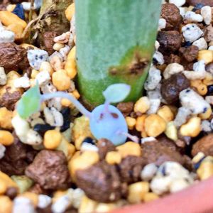葉挿しで宝珠の赤ちゃん。5mmぐらいで写真ピンボケすみません。 気付いたら小さな芽出てました! 可愛いっすね!