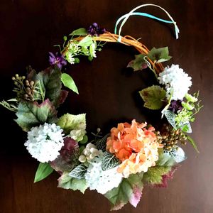 アーティフィシャルフラワーのリースを作りました。ホームセンターで花材がSALEしてたので、つい色々買ってしまった(*´罒`*) 可愛く出来て満足満足💕