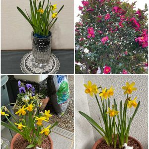 今日は1日冷たい雨☔ お庭に出られません💦 なので昨日のpicから♪ ①は小さな水仙ティタティタ🌼と黄色いオキザリス🌼 このオキザリスは逞しくて増えました😄 でも抜くのも簡単で咲くと可愛いです💕 ②③④は寄せ植え🪴 紫のリナリア 白いオステオスペルマム 花かんざし 咲いてないピンクのアークトチスは蕾🌸 早く咲いて欲しいなぁ〜✿︎
