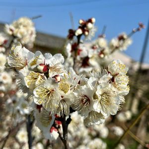 白梅が花盛りです🌸 アブ🪰がお花の周りを飛び交ってます😊 暖かい一日になりました☀️